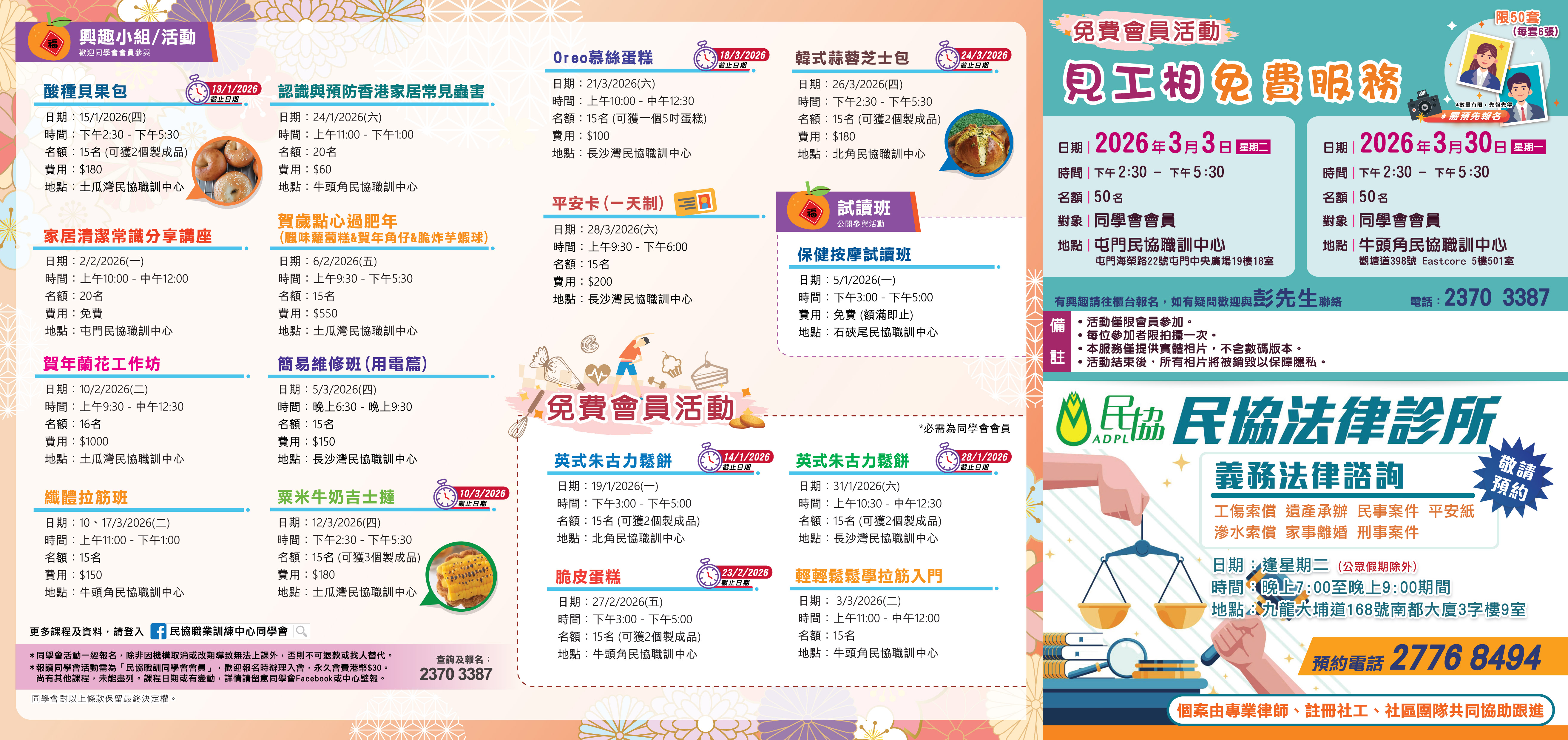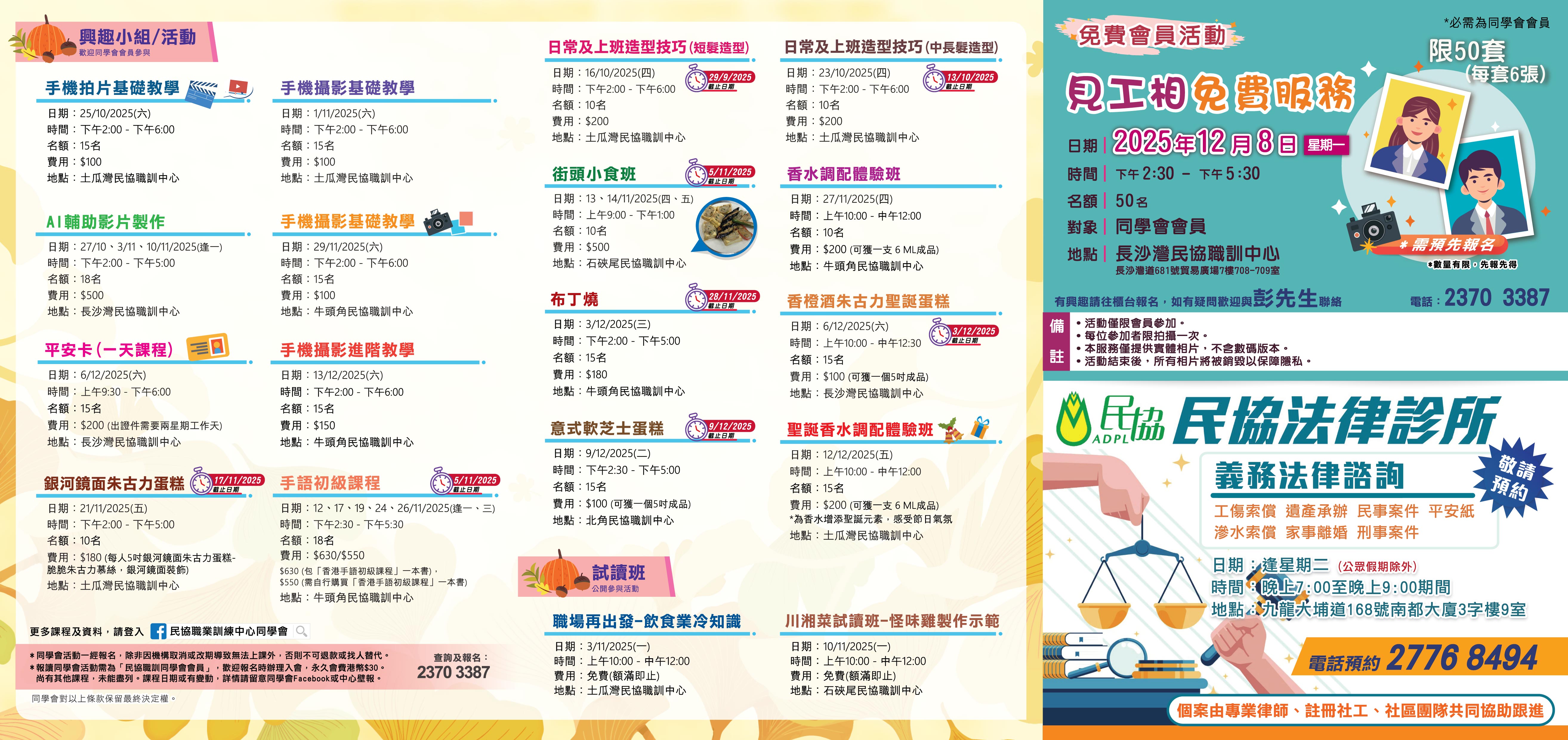 尚有其他課程及活動,詳情及最新資訊請瀏覽同學會facebook專頁。